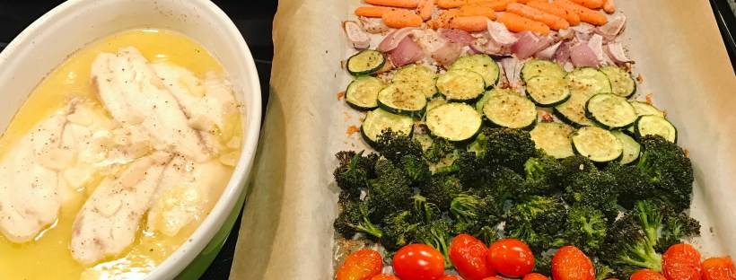 After St. Patrick's Day weekend, we found ourselves in desperate need of a very healthy dinner. This recipe is easy, effortless, and satisfying. Lemon & Garlic Butter Tilapia with Rainbow Veggies: Ingredients: 2 frozen tilapia (3 if you want one for lunch the next day), 3 cloves garlic, 1/2 cup lemon juice, 1/3 stick unsalted … Continue reading White Wine & Lemon Baked Tilapia & Rainbow Vegetables
