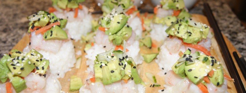 *Adapted from Closet Cooking* Makes 12 sushi stacks Ingredients: 2 cups sushi rice (this will make more than you need, but I didn't want to be short) 2 bags (340g x2) pacific white shrimp (I bought the pre-cooked Irresistibles brand from Food Basics) 3 avocados (chopped into cubes) 1/3 cup matchstick carrots (chopped into finer … Continue reading Homemade Sushi Stacks