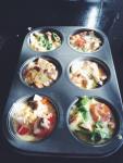 I took this recipe from Pinterest (classic) and made some little mini crustless quiches. You can add whatever you’d like in these. Next time, I’m actually adding bacon (or pancetta cubes). What I did add (cherry tomatoes, green onion, red pepper, spinach, mushroom and cheddar cheese) was great, but I always like a little bacon in my breaky.