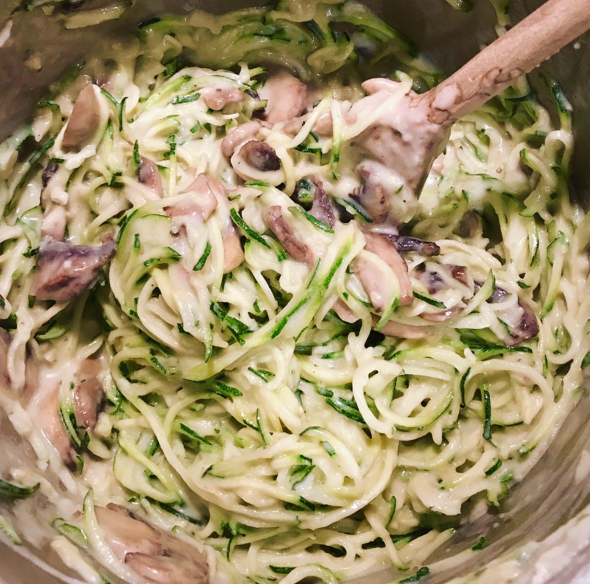 image4 Previous Next Published October 13, 2017 at 1241 × 1228 in Easy Weeknight Zoodles with Homemade Alfredo Sauce & Sautéed Mushrooms