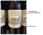 - The brand name: this can be a made up company name, or the name of the vineyard itself