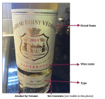 - Indication of the type of wine (ex: table wine (red or white), sparkling, or dessert)